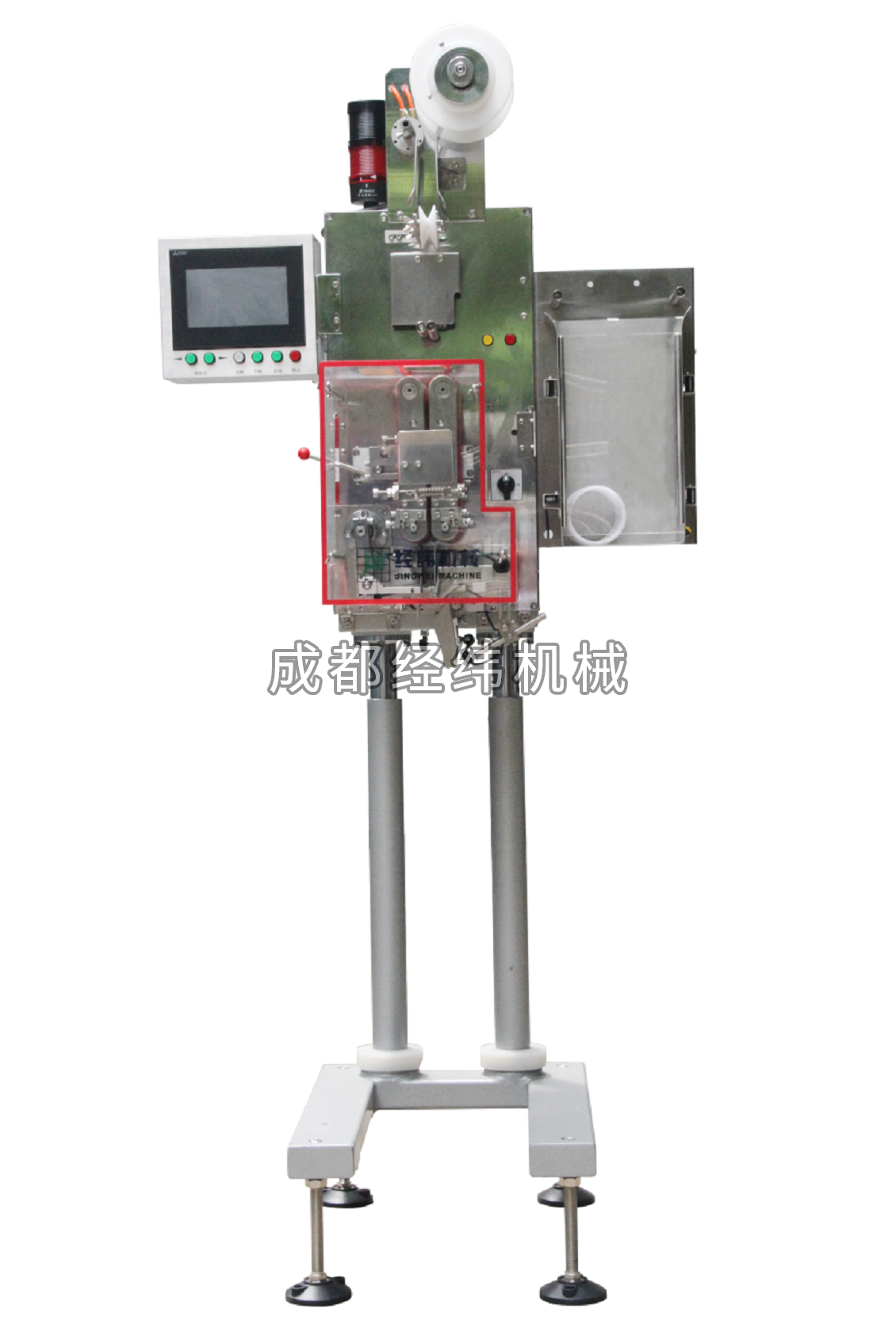 3、可在線自動(dòng)計(jì)數(shù)及設(shè)定連續(xù)切斷數(shù)量,調(diào)整切斷位置、切刀力度及物料投放位置。